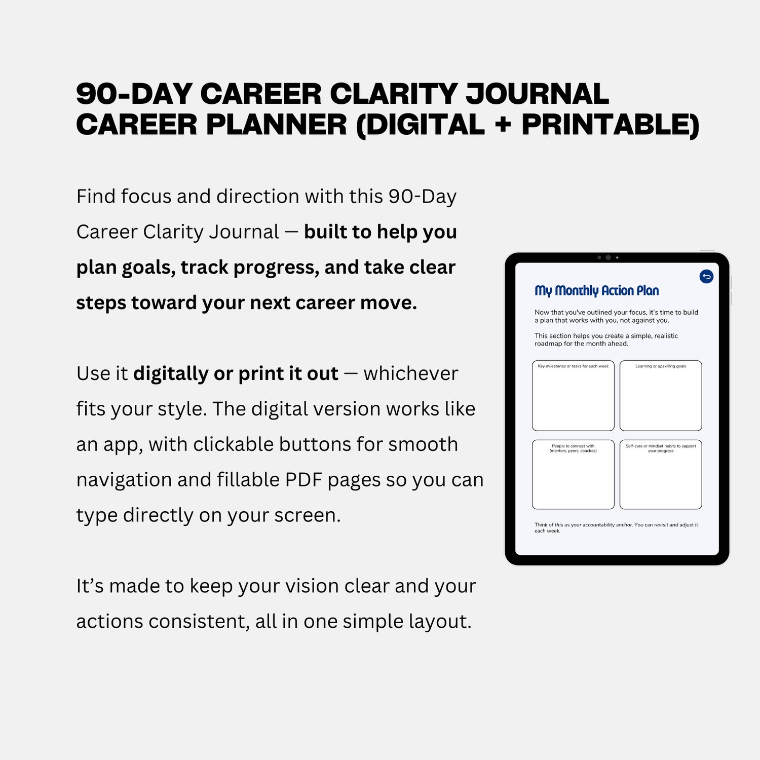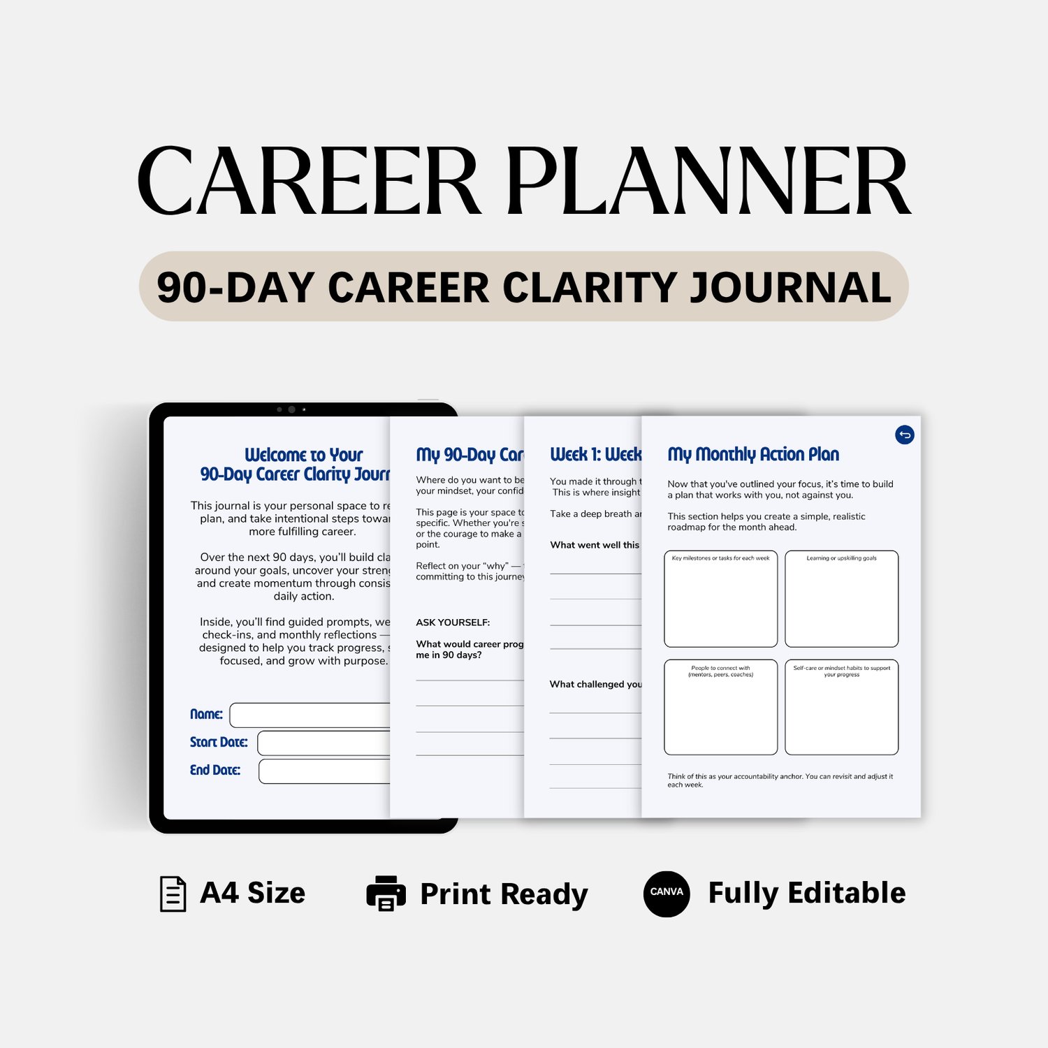 90-Day Career Clarity Journal | Career Planner (Digital + Printable)