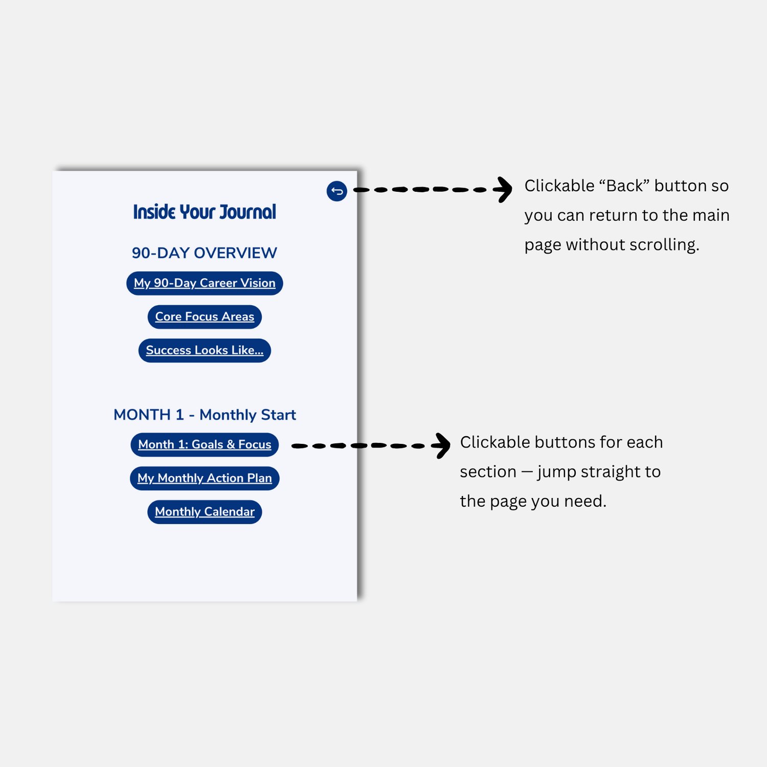 You can use it digitally or print it out — whatever fits your workflow. The digital version works like an app, with clickable buttons for easy navigation and fillable PDF pages so you can type directly on your device.