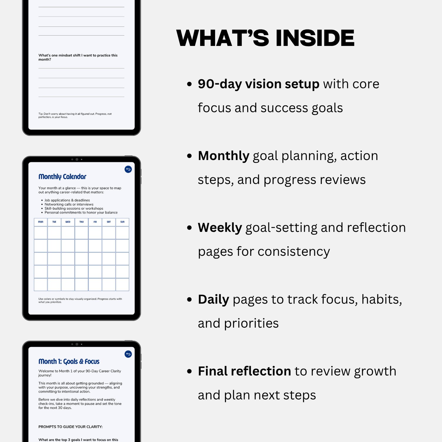 Each section guides you to reflect, plan, and take action, one day at a time. It’s built to keep your career vision clear and your daily steps intentional.