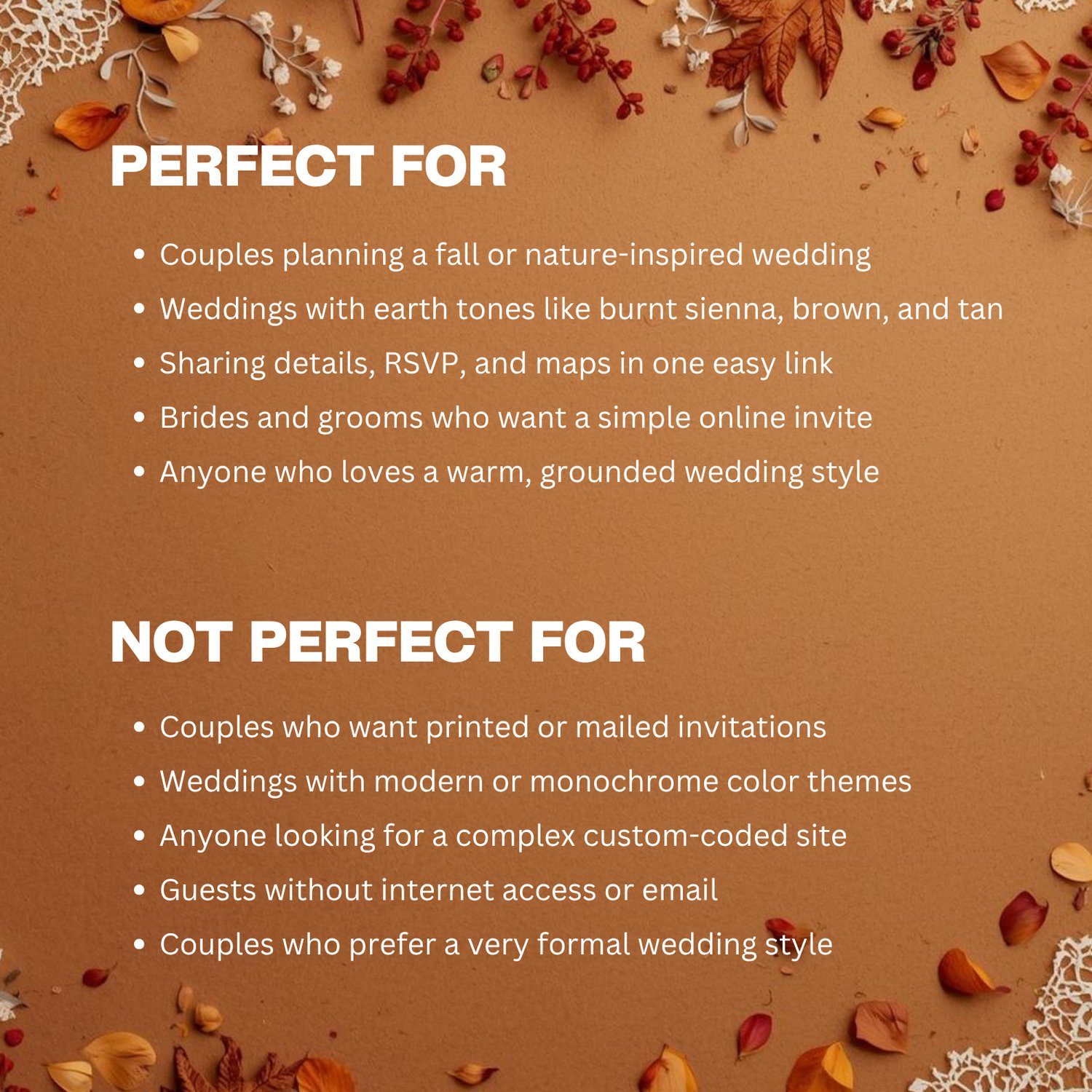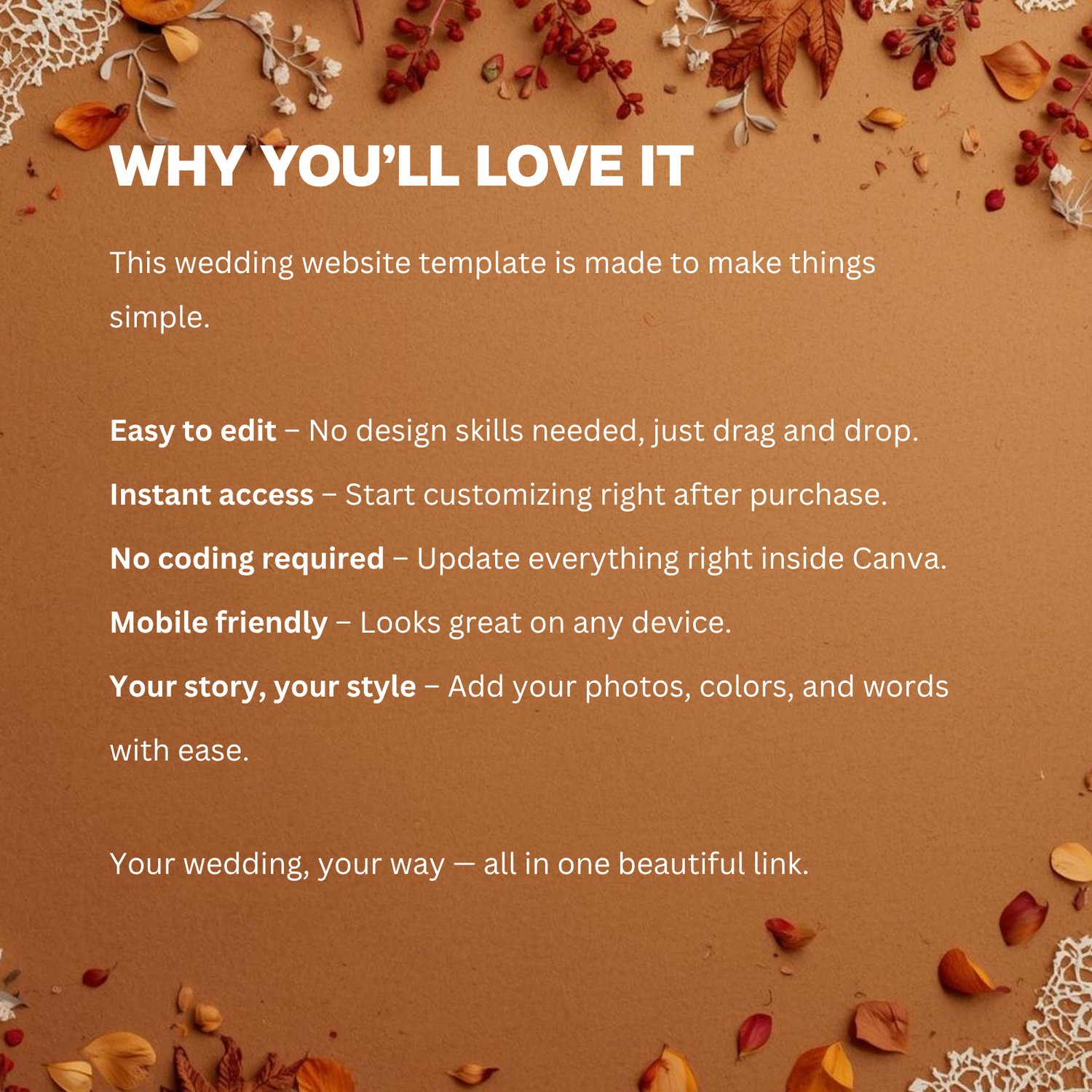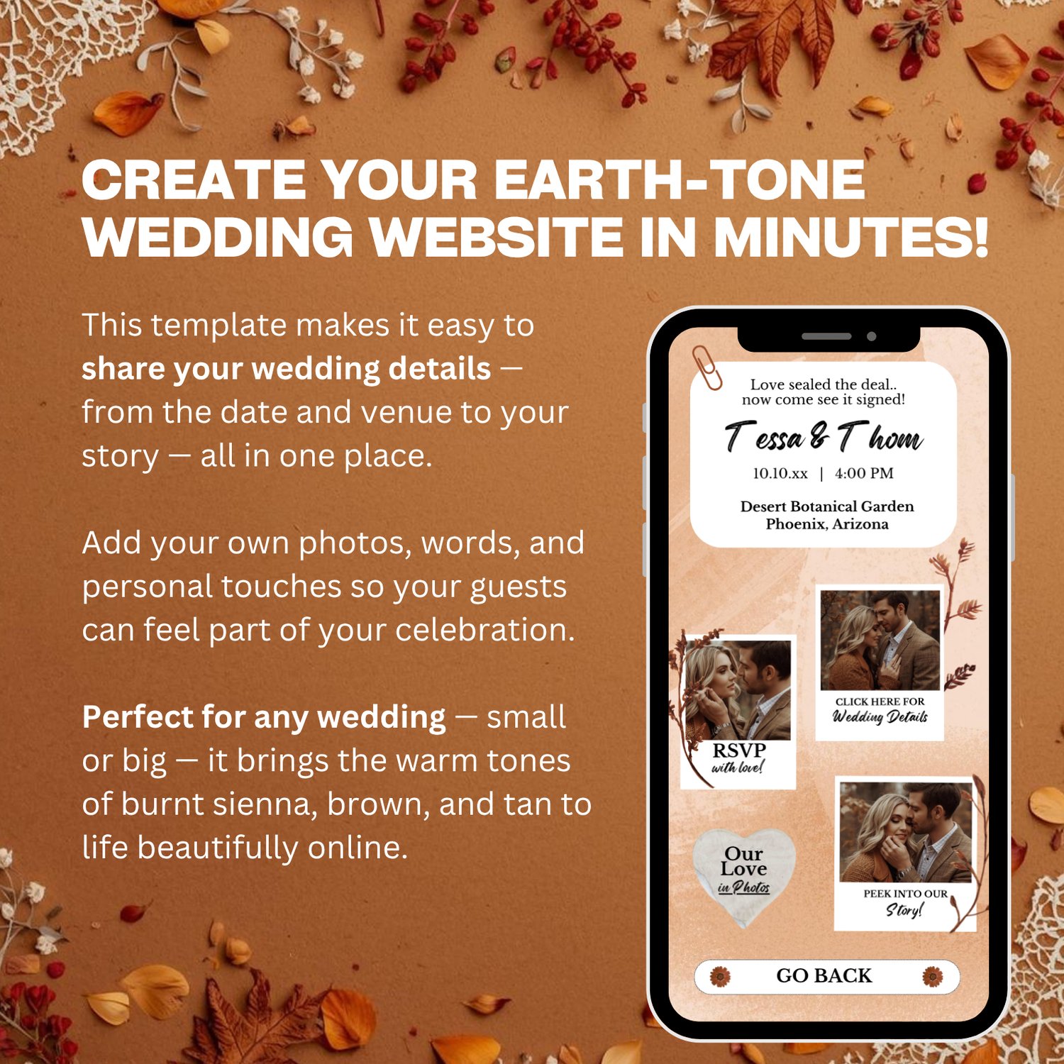 CREATE YOUR EARTH-TONE WEDDING WEBSITE IN MINUTES! 🍂