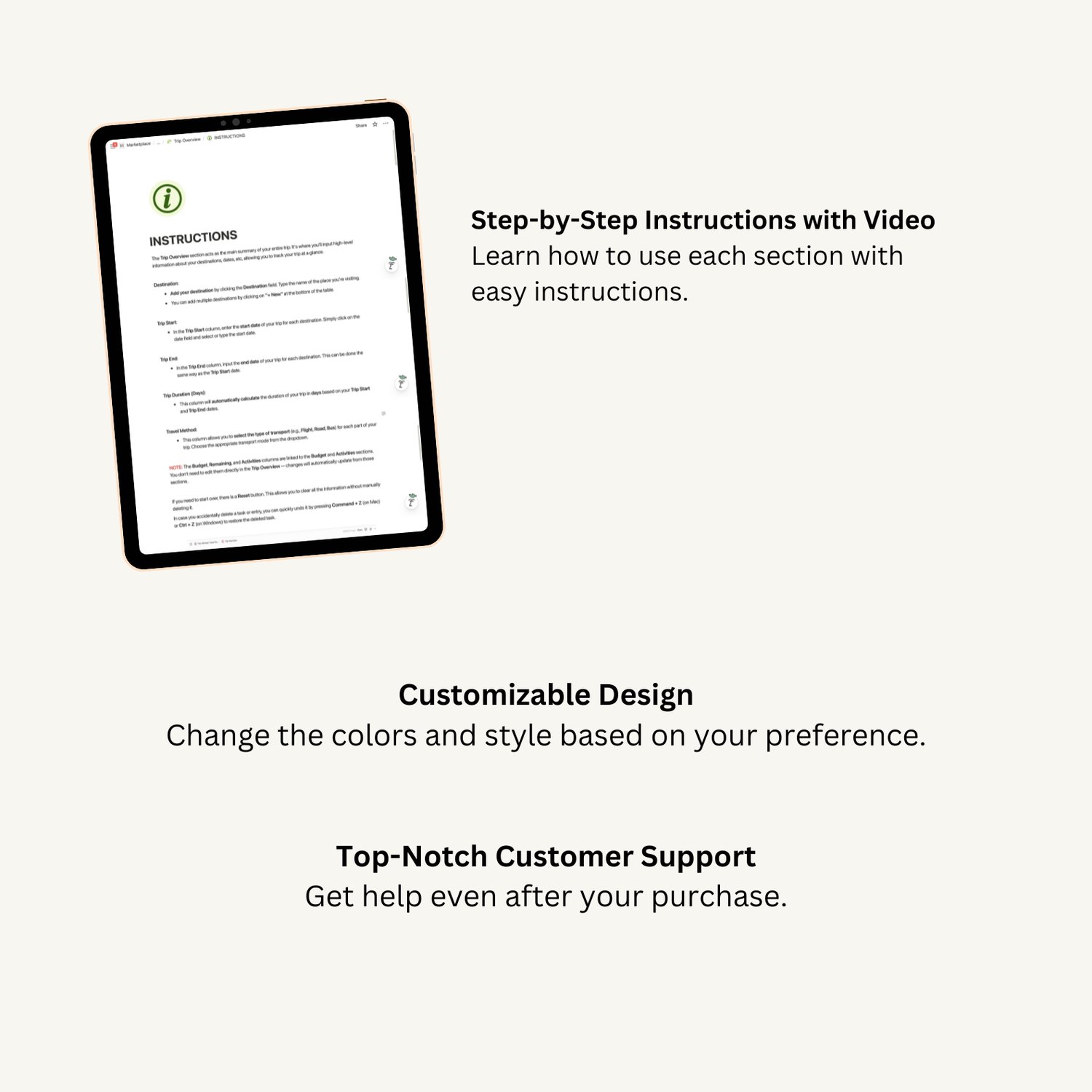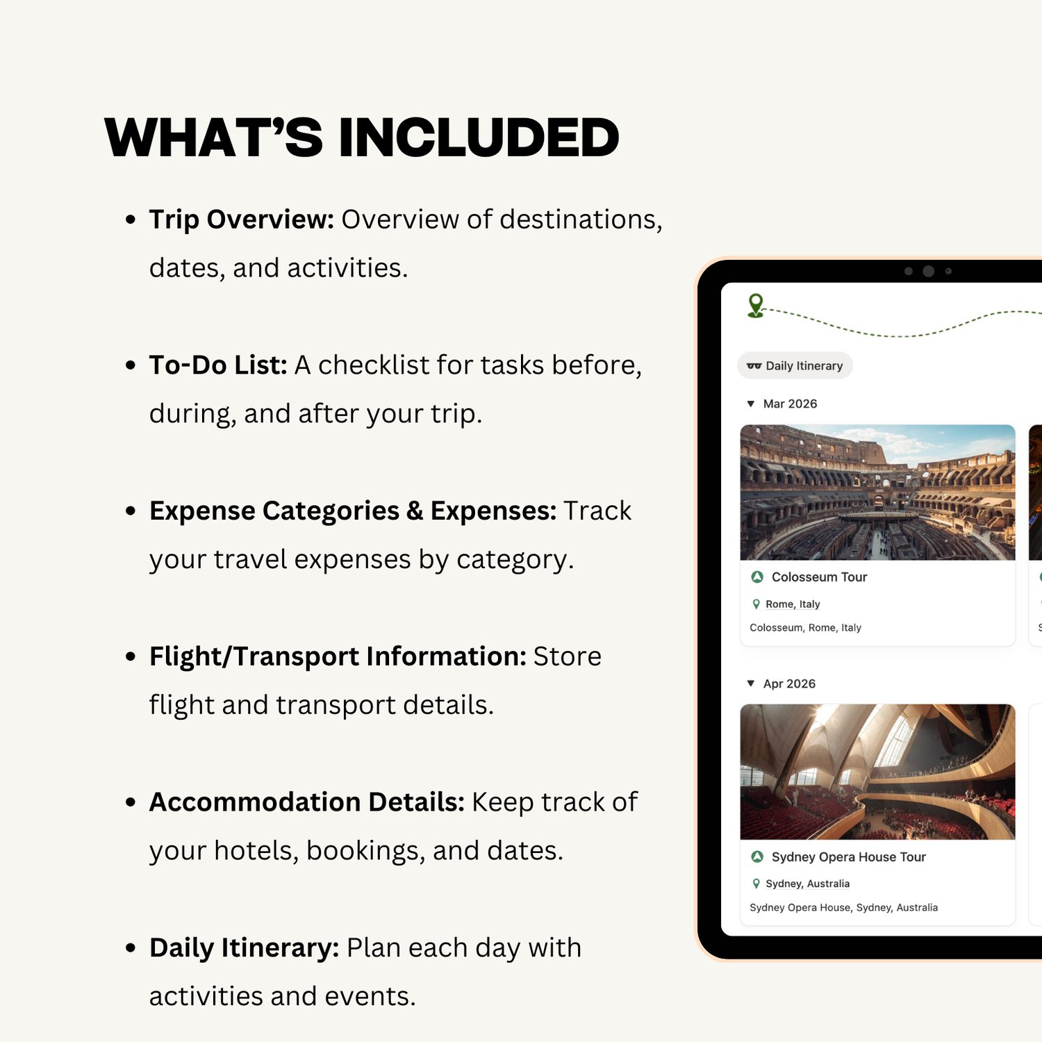โช๏ธ Editable sections for easy customization based on your travel needs.