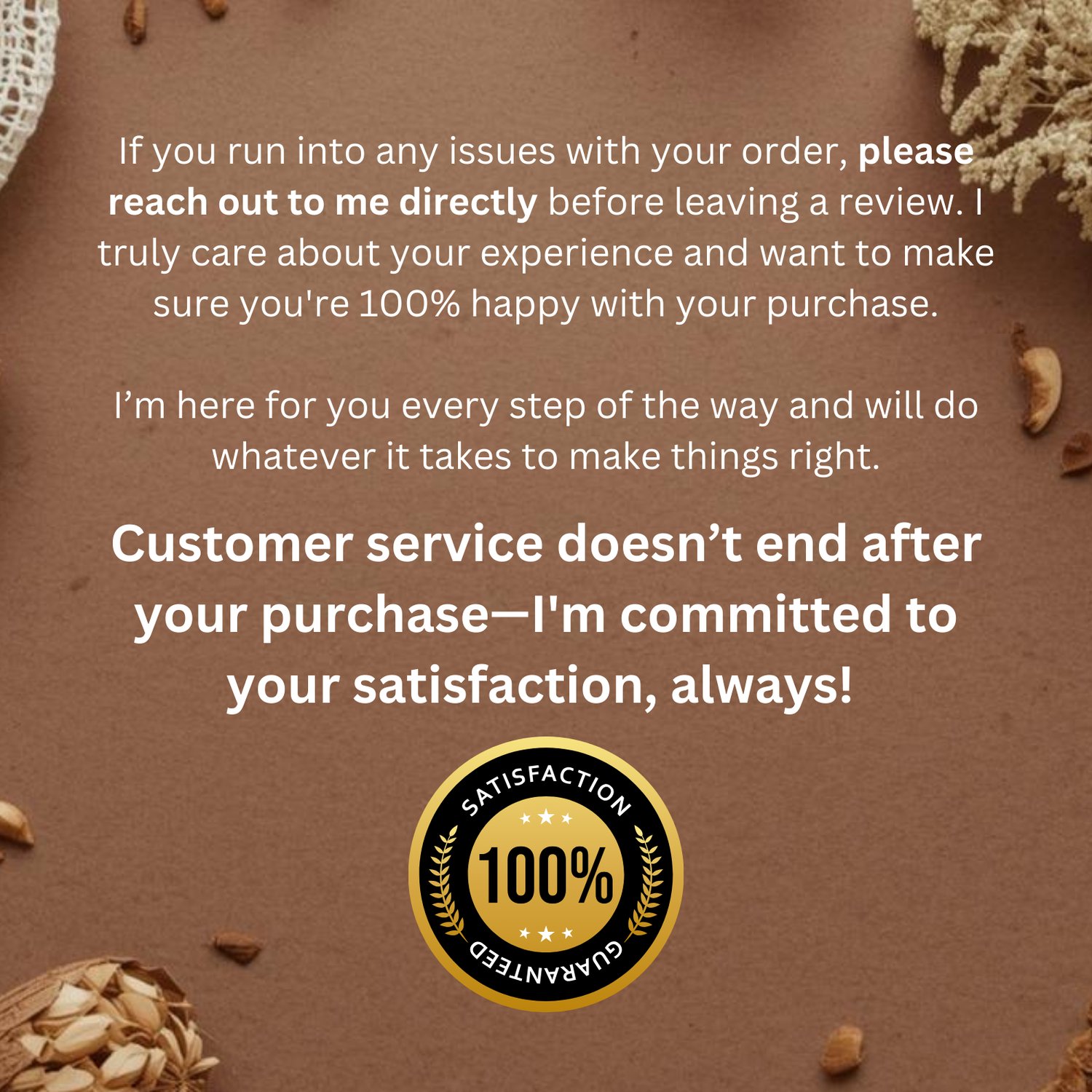 Customer Satisfaction Guaranteed: Need help? Don’t hesitate to reach out directly. I am committed to making sure you are satisfied with your purchase. Message me HERE.